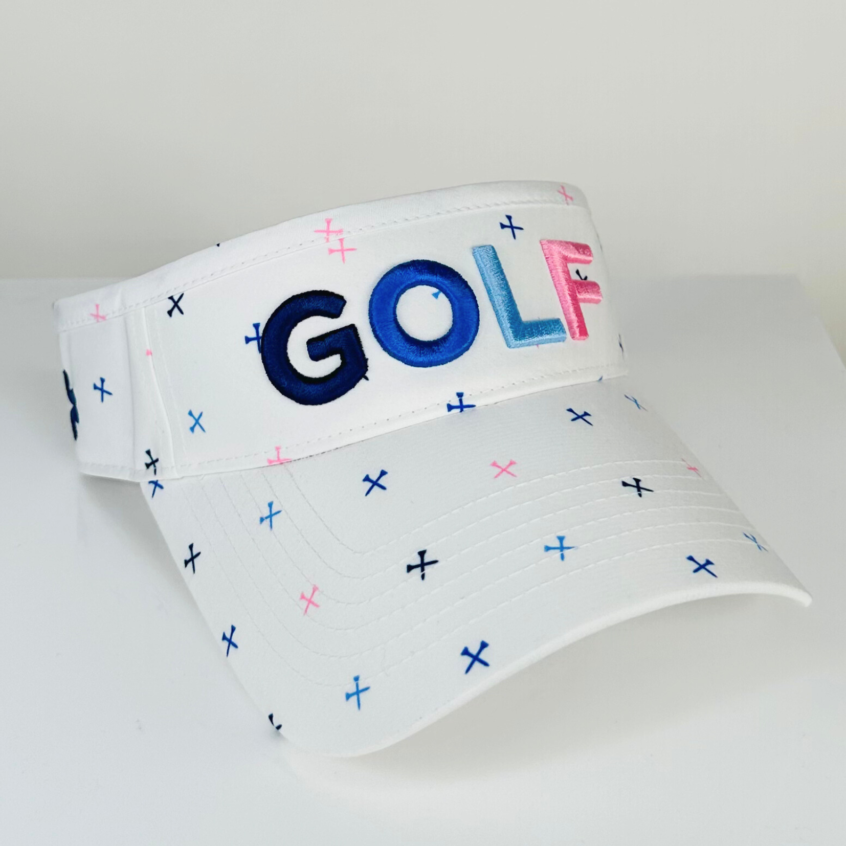 GOLF Puff, Pink & Blue Crossed Tees Print, Visor UPF 50+